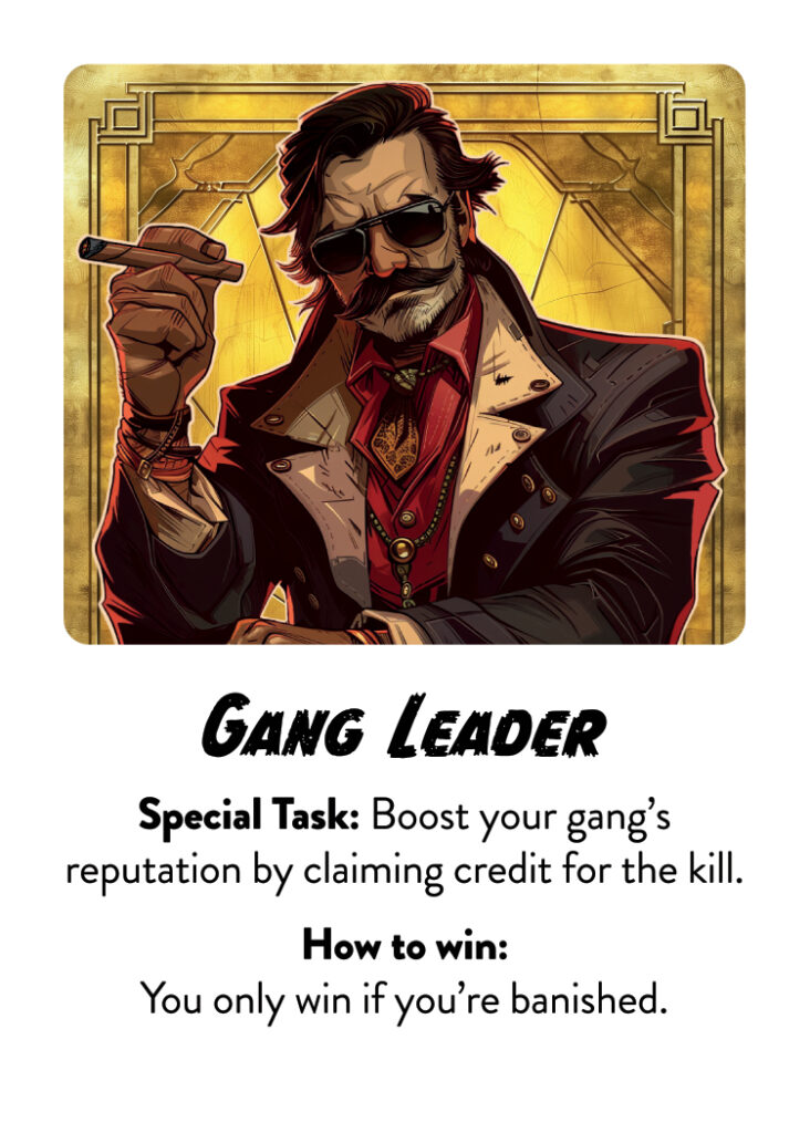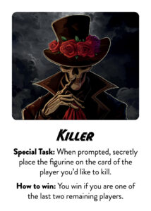 At the start of the game, each player is secretly dealt a role card. The role you receive determines what your ability and objective is: