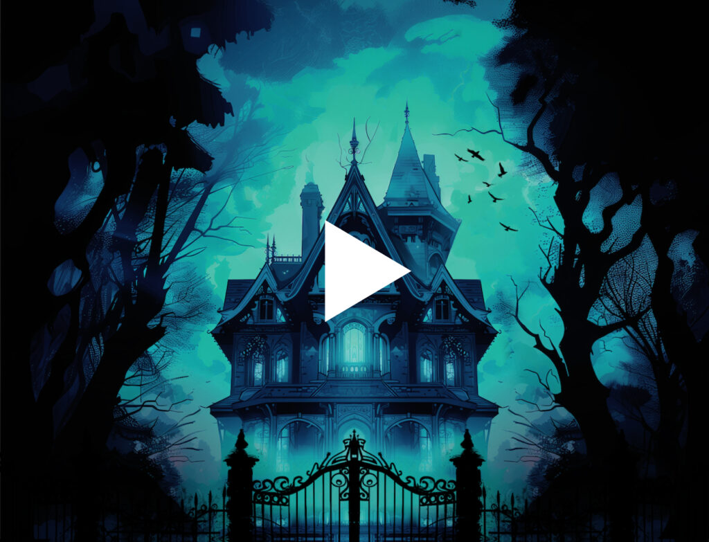 As you approach the mansion, the wrought-iron gates slam shut behind you. You apprehensively creak open the heavy wooden door to hear a voice crackling through an old gramophone.