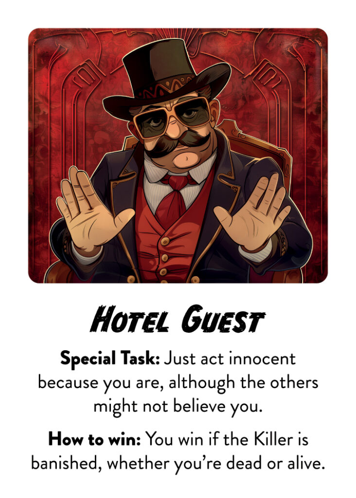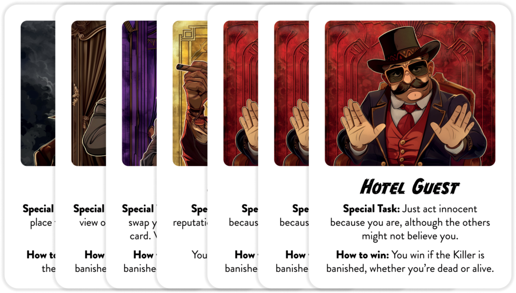 4 Players: Killer , Detective, Thief, Hotel Guest x3 , Gang Leader